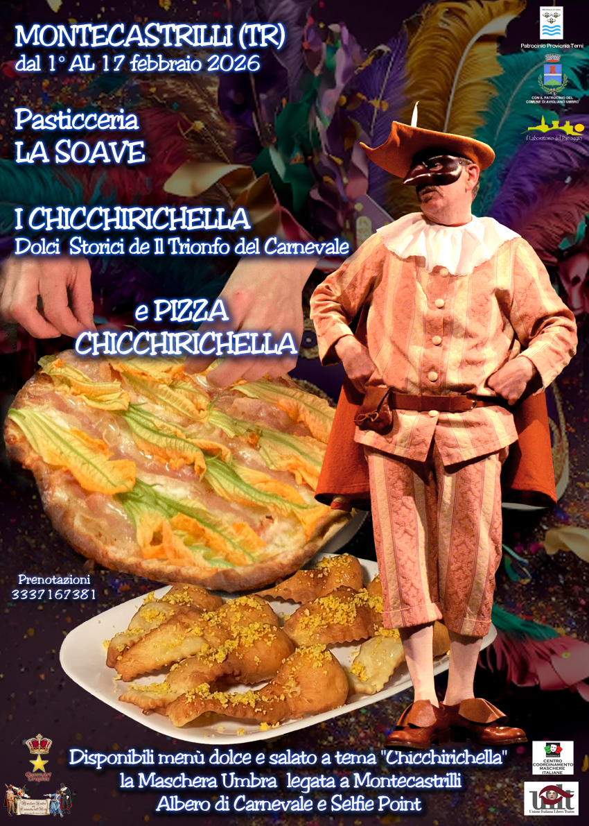 Disponibili menù dolce e salato a tema "Chicchirichella" la Maschera Umbra legata a Montecastrilli